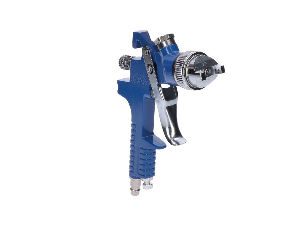 Profesionální stříkací pistole nabízí špičkovou kvalitu a moderní technologii HVLP (High Volume Low Pressure), která zajišťuje efektivní a přesné nanášení barvy při použití nižšího tlaku a vyššího objemu vzduchu. Tento systém přináší nejen vyšší účinnost a přesnost, ale také nižší spotřebu barvy, což vede k ekonomičtějšímu provozu a zdravějšímu pracovnímu prostředí.Pistole je vybavena několika regulačními knoflíky, které umožňují snadné a pohodlné ovládání: