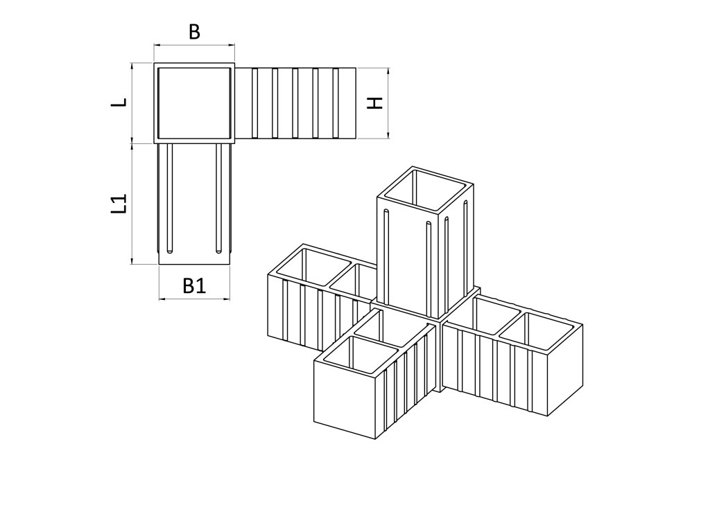 Plastová spojka - 4-nohý kus vhodný do profilu velikosti 20x20x1.5 mm