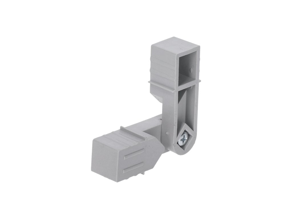 Plastová spojka - pohyblivý rohový kus vhodný do profilu velikosti 20x20x1,5 mm, otevíratelný až na 270˚