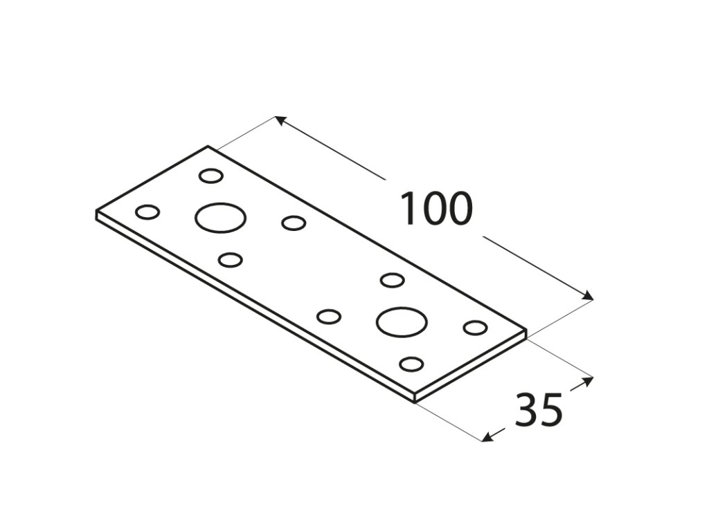 plochá spojka 100x35mm, 2,5mm pozink, počet děr o průměru 5mm-8ks, 11mm-2ks