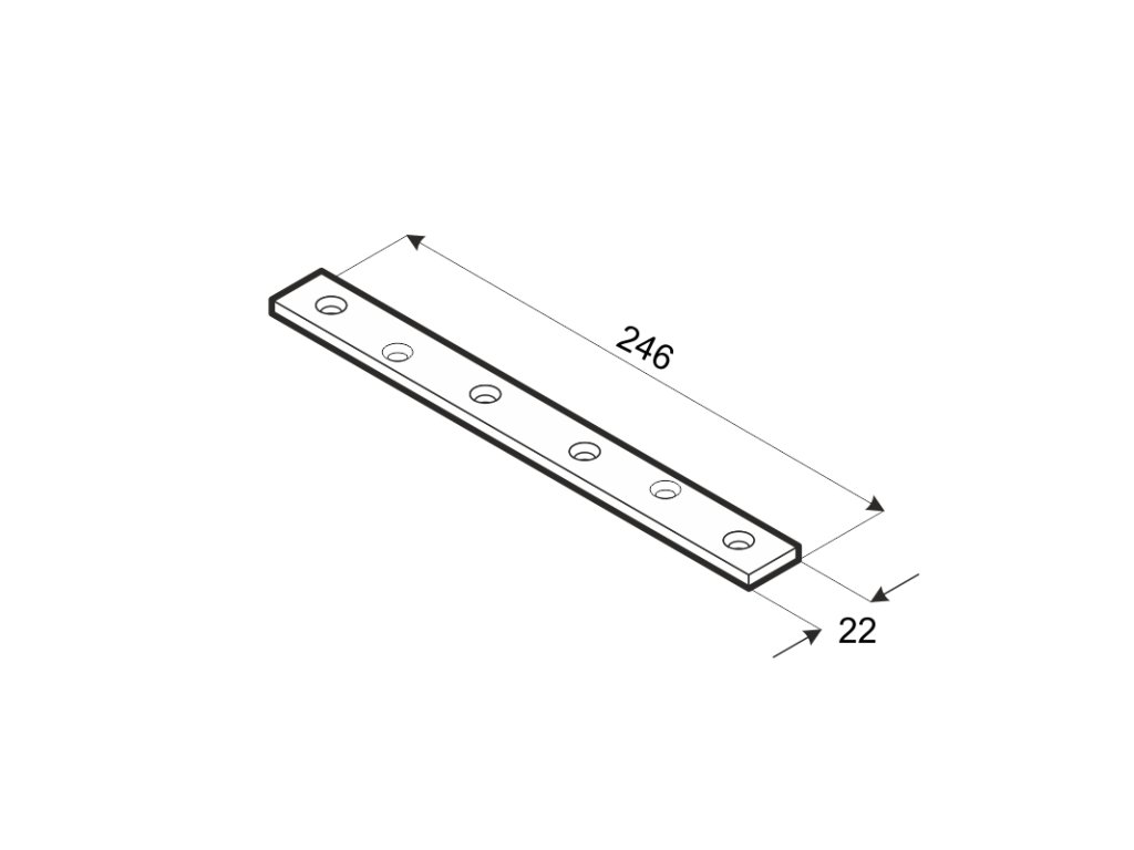 plochá spojka 246x22mm, 2,0mm pozink, počet děr o průměru 4,5mm-6ks