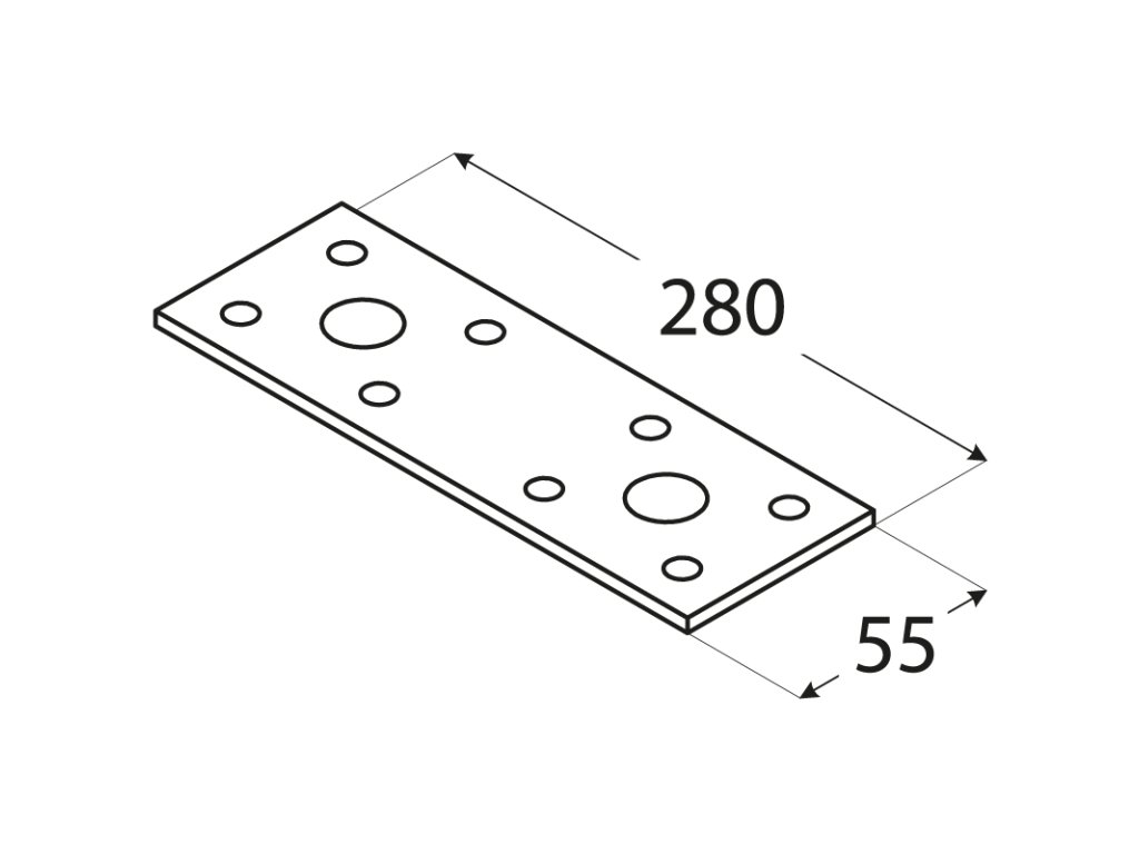 plochá spojka 280x55mm, 2,5mm pozink, počet děr o průměru 5mm-36ks, 11mm-4ks