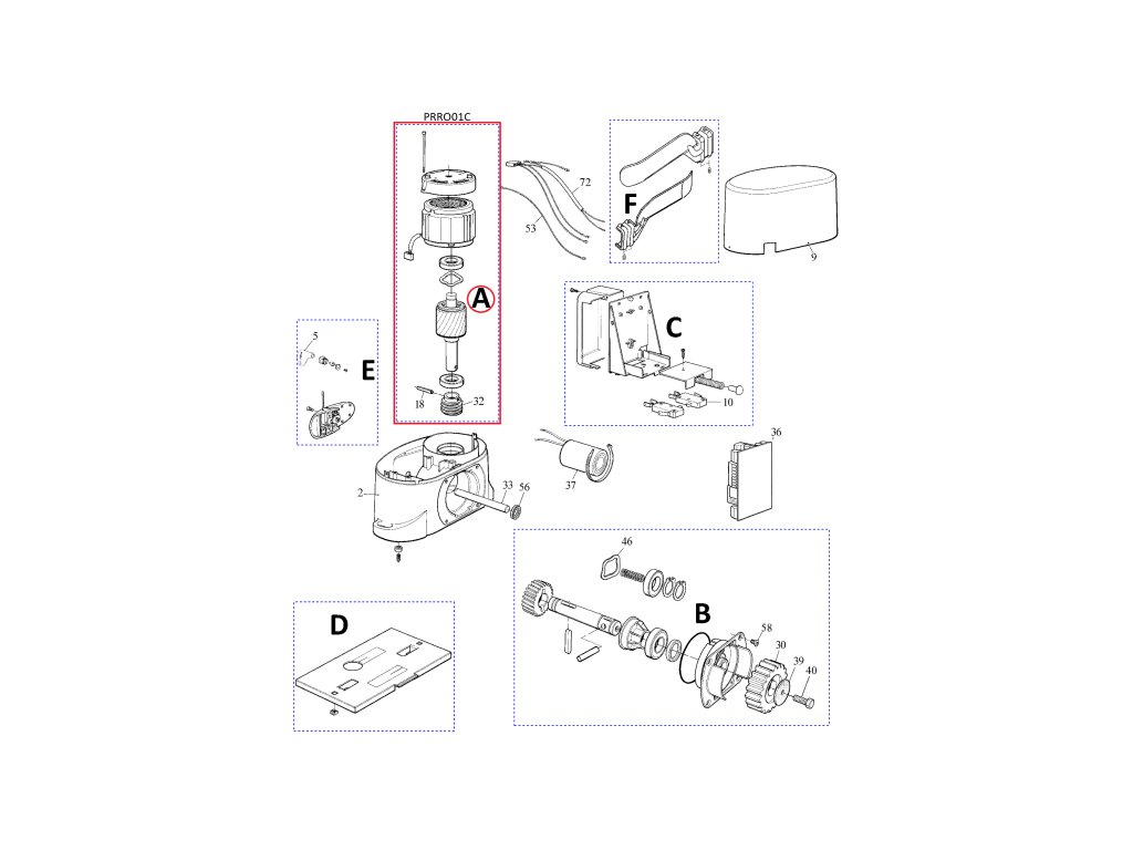 PRRO01C motor komplet pro ROBO500.Přesný rozpis náhradních dílů naleznete na stránce www.kovianportal.cz.