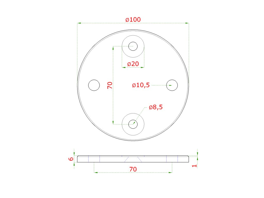 Deska na boční kotvení sloupu (ø 100x6 mm), broušená nerez K320 / AISI304Doplňkové parametry