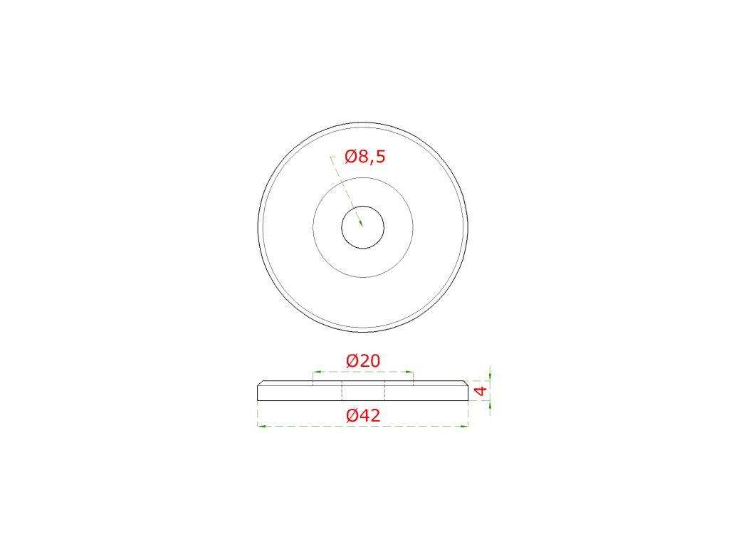 Deska na boční kotvení sloupu (ø 42x4 mm), broušená nerez K320 / AISI304Doplňkové parametry