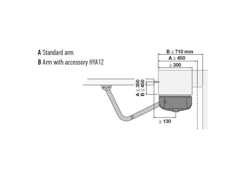 NICE HYA12 je prodloužené rameno navržené pro pohony HYPPO, umožňující instalaci na brány s hloubkou uchycení až 450 mm. Toto příslušenství zvyšuje flexibilitu montáže pohonu na různé typy bran, kde standardní rameno nemusí být dostatečné.