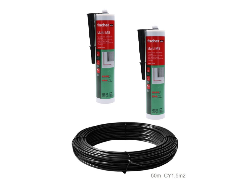 Sada pro zhotovení indukční smyčky k závoře pro detekci vozidel, obsahuje 50 m měděného drátu CY 1,5 m², 2x tmel v kartuši 310 ml