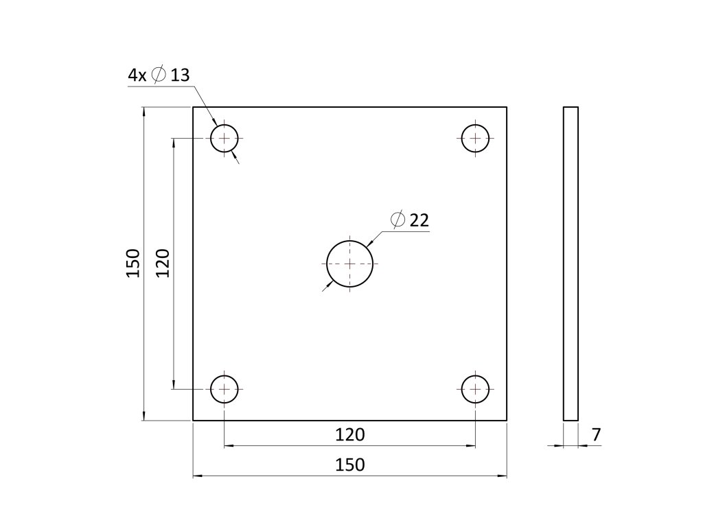 Platňa univerzálna 150x150x6mm s otvormi 13mm, bez povrchovej úpravy