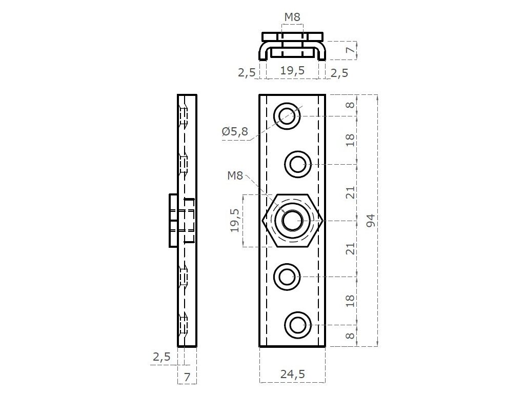 Lišta pro uchycení vozíku C778P, lisovaná otočná matice, závit M8