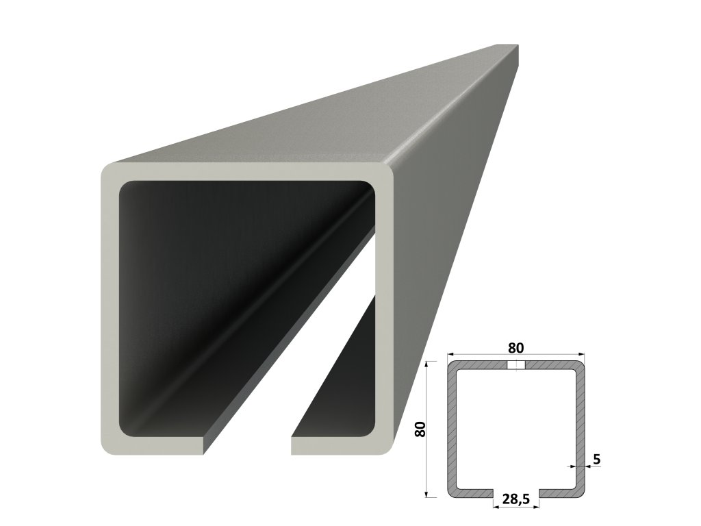 C profil 80x80x5 mm Zn, L: 7000 mm, pozinkovaný, pro samonosný systém posuvné brány, cena za 7 m