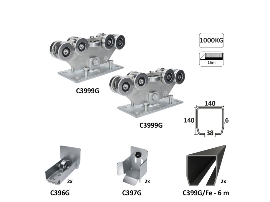 GRANDE-9 samonosný systém 140x140x6 mm pro posuvné brány do 1000 kg / 15 m otvor (C399G/Fe 2x 6 m černý profil, C3999G 2ks, C396G 2ks, C397G 2ks), intenzivní provozDoplňkové parametry