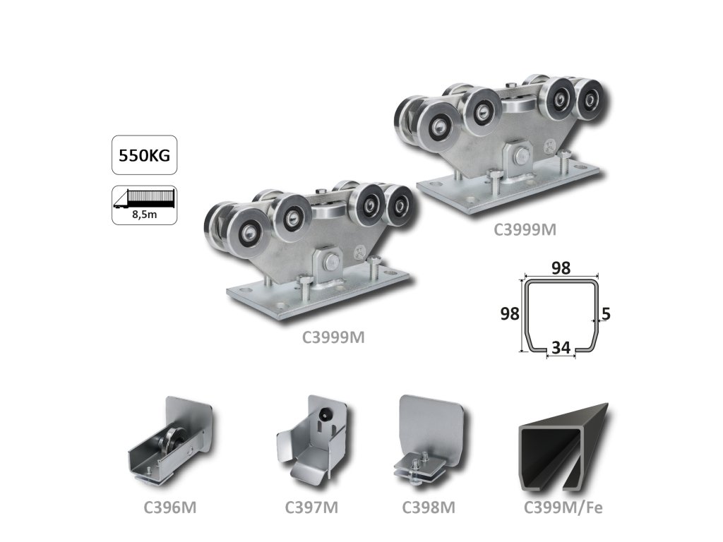 MEDIO-9 samonosný systém 98x98x5 mm pro posuvné brány do 500 kg / 8,5 m otvor (C399M/Fe 1x 6 m černý profil, C3999M 2ks, C396M 1ks, C397M 1ks), intenzivní provozDoplňkové parametry