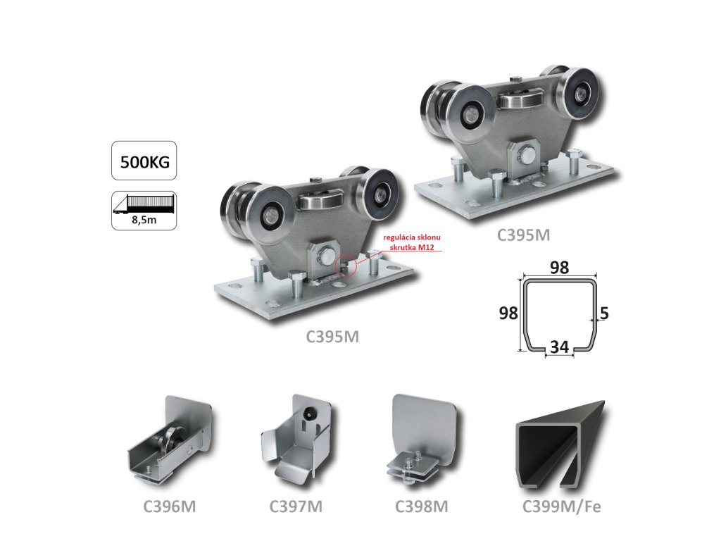MEDIO-Klasik samonosný systém 98x98x5 mm pro posuvné brány do 450 kg / 8,5 m otvor (C399M/Fe 1x 6 m černý profil, C395M KLASIK 2ks, C396M 1ks, C397M 1ks), běžný provozDoplňkové parametry