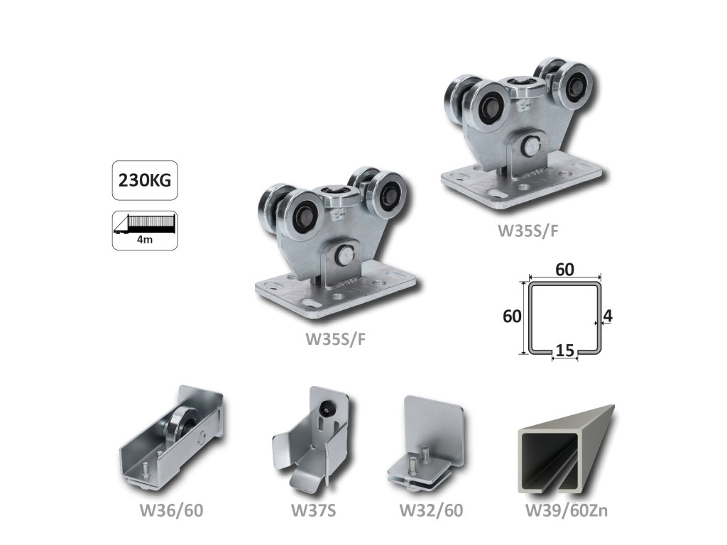 Samonosný systém 60x60x4 mm pro posuvné brány do 150 kg / 4 m otvor (W39/60Zn 6 m pozinkovaný profil, 1x W-SET60F)Doplňkové parametry