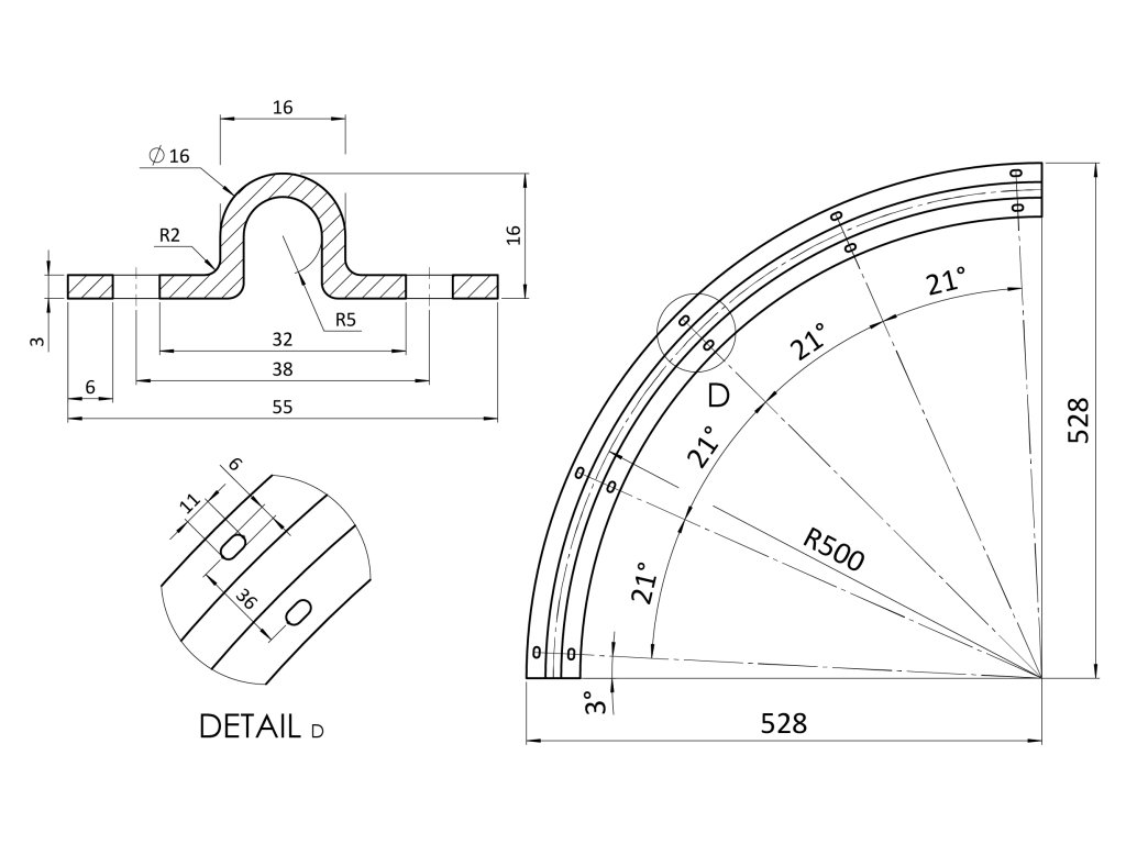 Vodiaci profil pre brány, U profil, dĺžka 0.5m, zakrivenie 90 stupňov