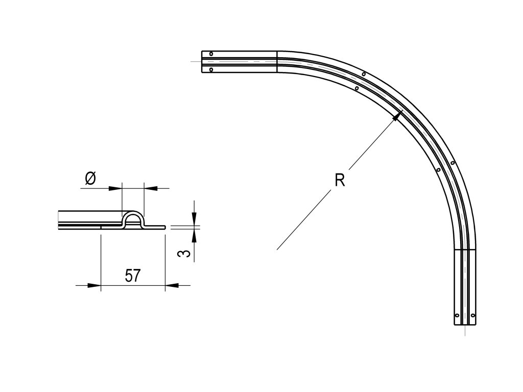 Vodící profil pro brány, U ø 16mm, poloměr 1m