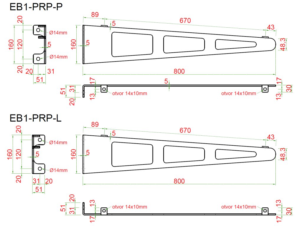 Konzoly pro skleněný přístřešek – set pravá + levá strana, broušená nerez K320 / AISI 304