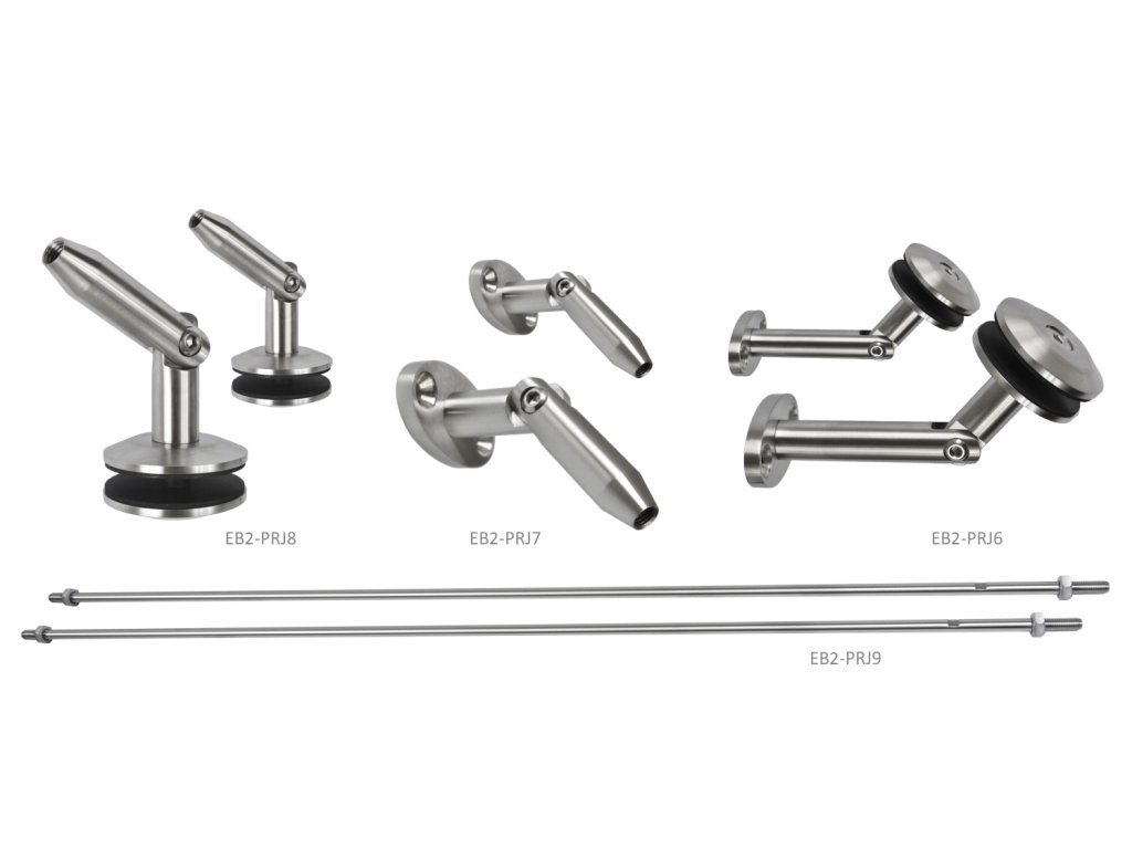 Set na skleněný přístřešek pro sklo 8.00 - 12.76mm, (set obsahuje: EB2-PRJ8 2ks, EB2-PRJ9 2ks), broušená nerez K320 /AISI316
