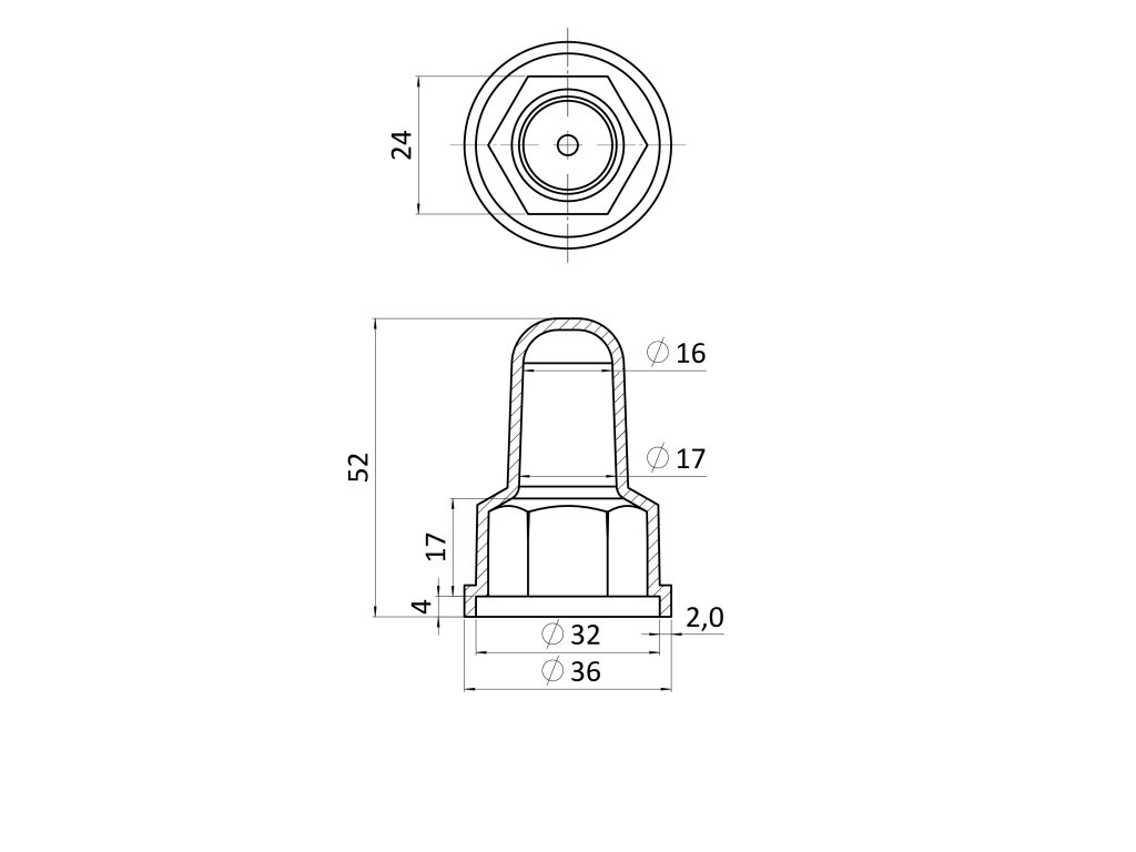 krytka plastová na matice a šróby M16, H-53mmDoplňkové parametry