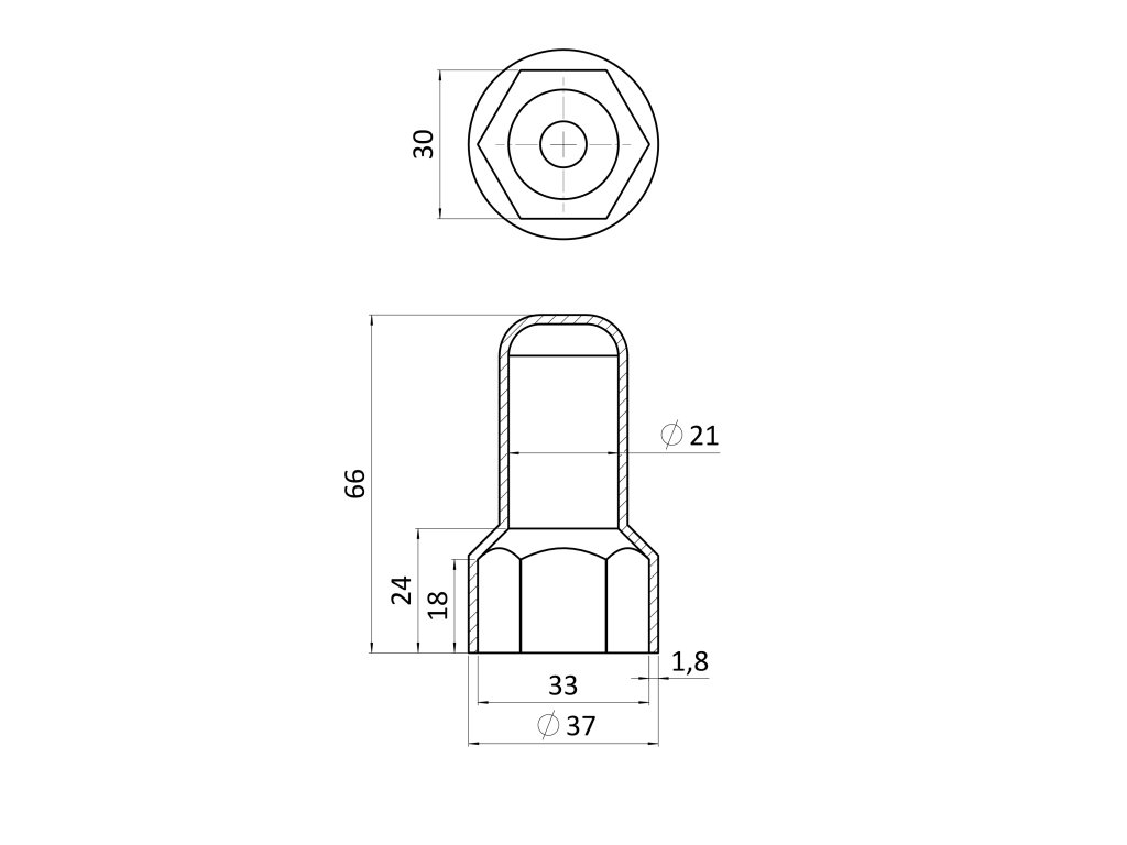 krytka plastová na matice a šróby M20, H-60mmDoplňkové parametry