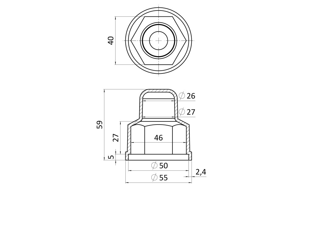 krytka plastová na matice a šróby M27, H-80mmDoplňkové parametry