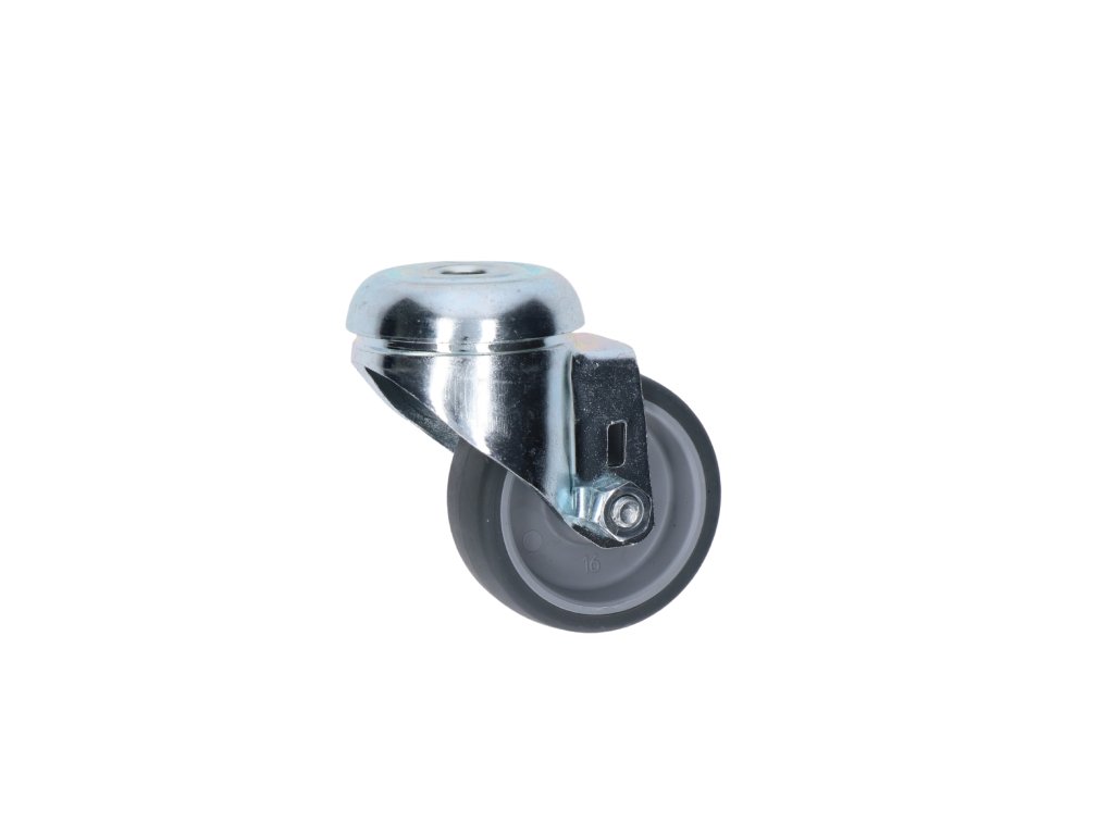 Otočné kolečko, vidlice vyrobená z ocelového výlisku - zinkovaná. Dvojitá kuličková dráha v hlavě otoče. Středový otvor na čep průměru 11mm. Střed kolečka vyroben z polypropylenu, běhoun kolečka z termoplatické pryže - TENTEPRÉN. Kluzné uložení.Doplňkové parametry