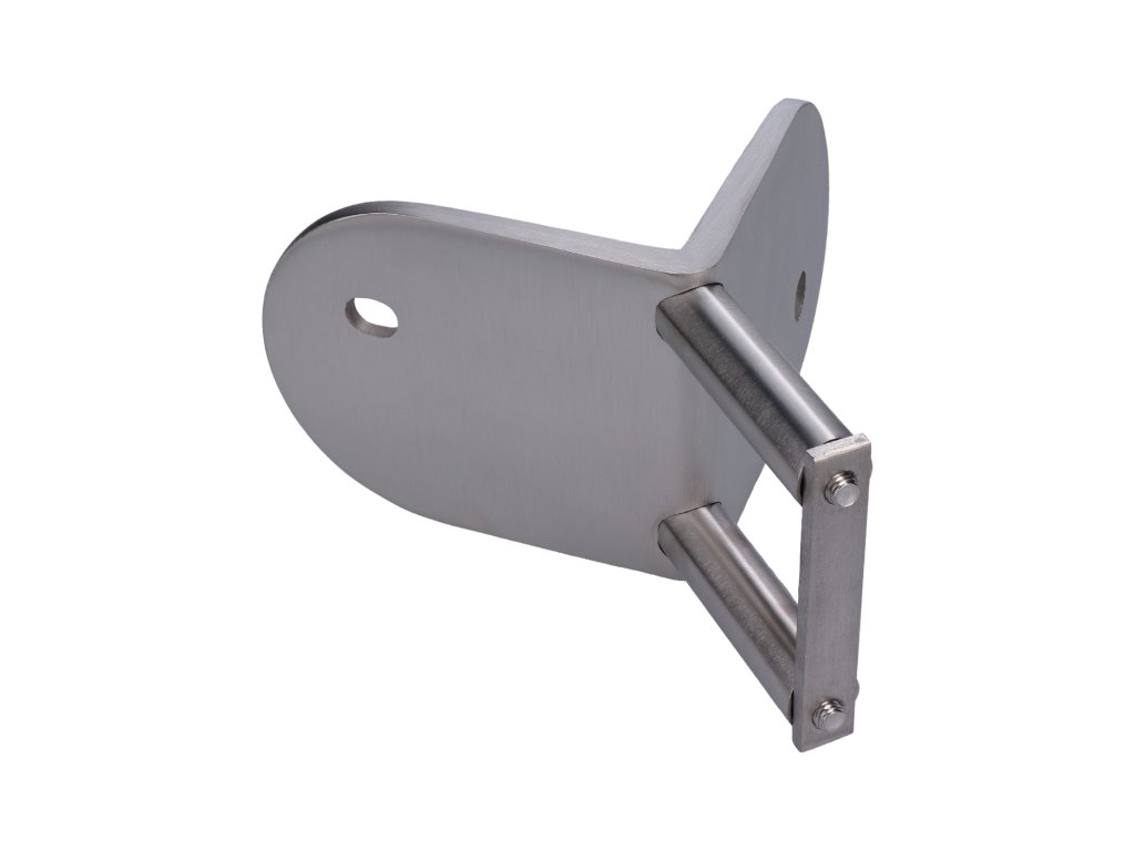 úchyt na vnější rohové kotvení sloupu ø 42.4mm, (kotevní deska tloušťky 5.5mm, ø 100mm), broušená nerez K320 /AISI316