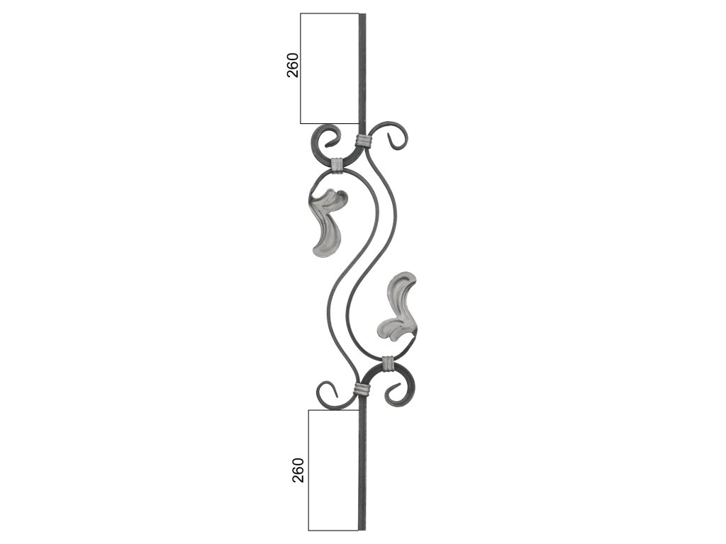 Tyč 12 x 12 mm, 420 x 170 mm, 800 mm