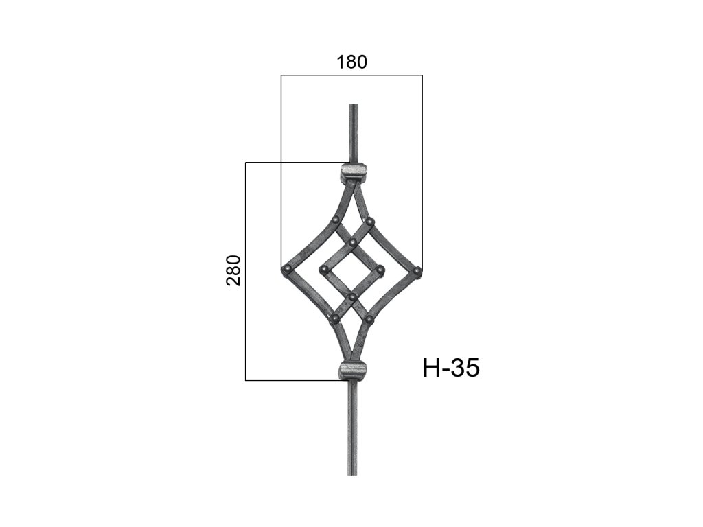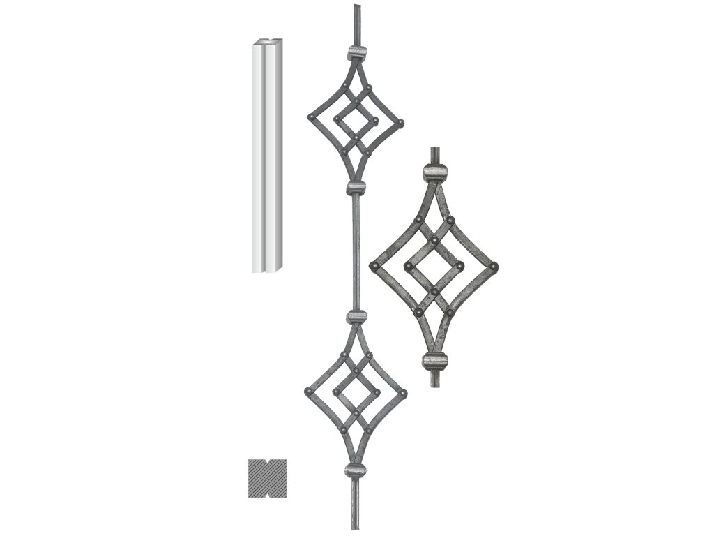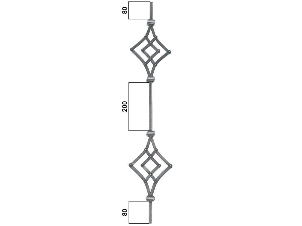 Tyč 680x180x950mm, tloušťka 12x12mm, ornament: nýtovaný 12x6mmDoplňkové parametry