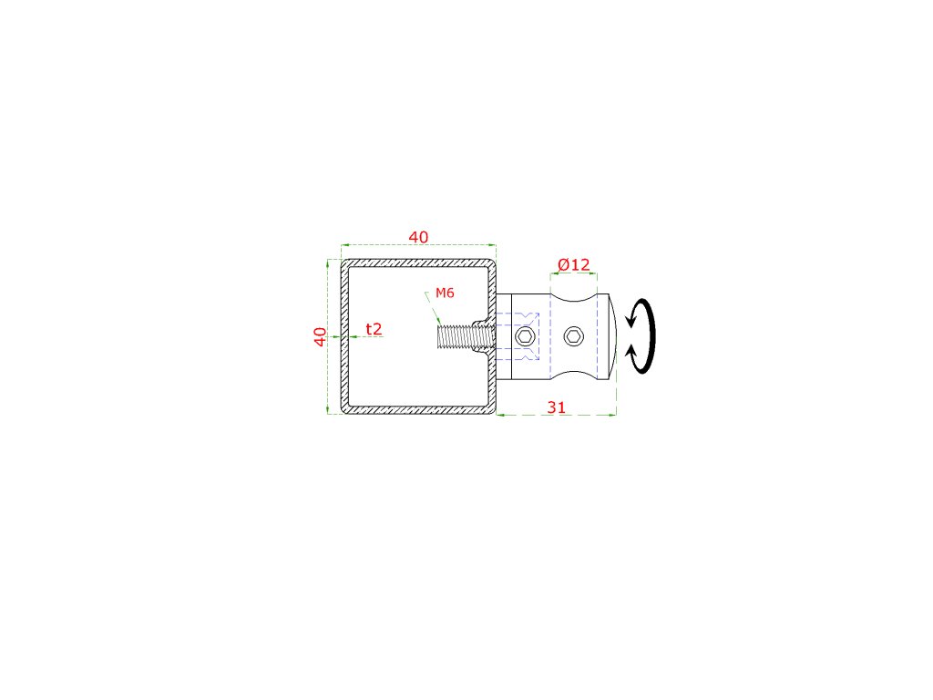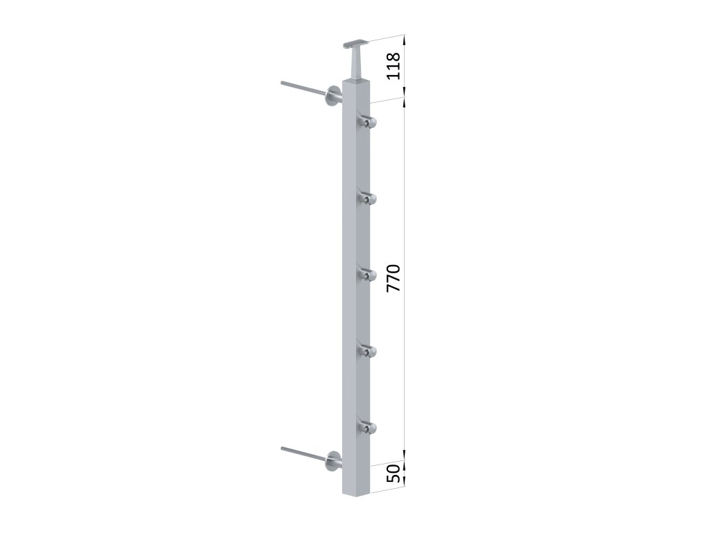 Nerezový sloup na francouzský balkón, boční kotvení, 5 řadový, průchozí, vrch pevný, (40x40x2.0 mm), broušená nerez K320 /AISI304Doplňkové parametry