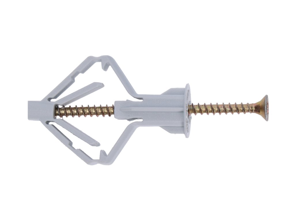 Hmoždinka plastová rozpěrná do sádrokartonu se šroubem-> hmoždinka pro snadné upevnění do sádrokartonu a do podkladů s dutinami