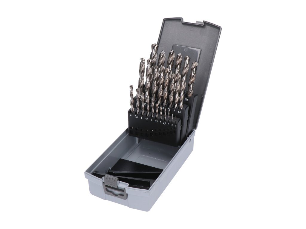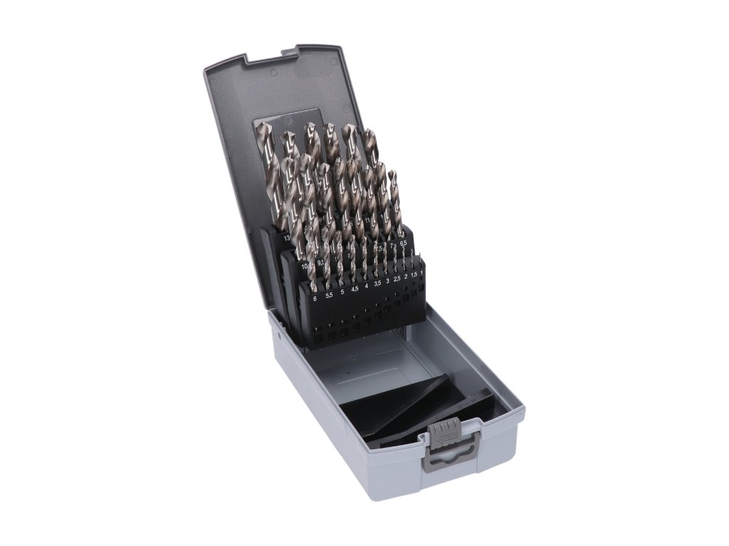 sada obsahuje: 1; 1,5; 2; 2,5; 3; 3,5; 4; 4,5; 5; 5,5; 6; 6,5; 7; 7,5; 8; 8,5; 9; 9,5; 10; 10,5; 11; 11,5; 12; 12,5 a 13Rádi bychom vám představili novou sadu vrtáků, která vám pomůže při vrtání za každé situace. Naše sada obsahuje 25 kusů vrtáků od velikosti 1 až po 13, takže si můžete být jisti, že naleznete ten správný vrták pro vaši práci.