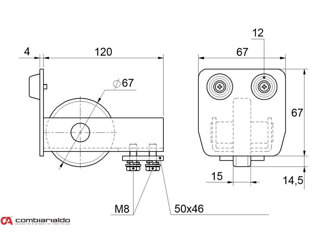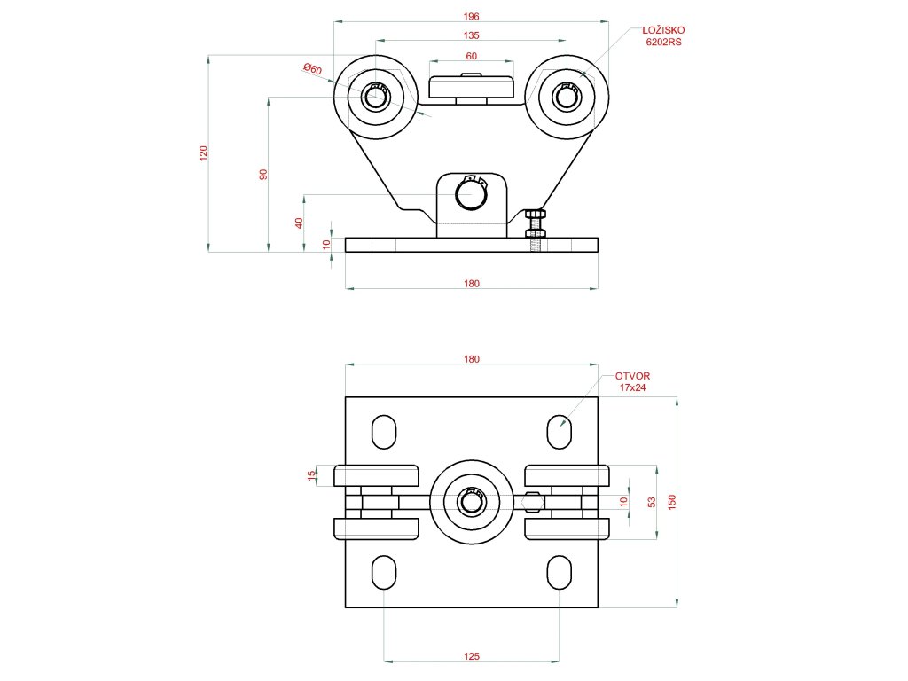 PICCOLO-Kombinovaný (Nerez/Pozink) samonosný systém 67x67x3mm pro posuvné brány do 200kg/4,5m otvor (C399P-IX 1x6m nerezový profil, C395P 2ks, C397P 1ks, C396P 1ks, C398P 1ks)