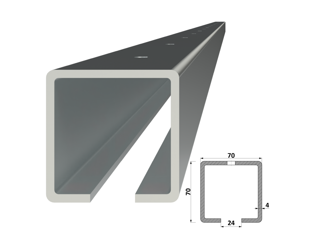 C profil 70 x 70 x 4 x 7000 mm s otvormi, pozinkovaný