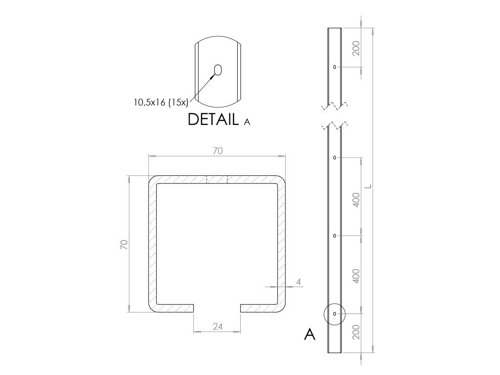 C profil 70x70x4mm s otvormi, pozinkovaný, dĺžka 6m