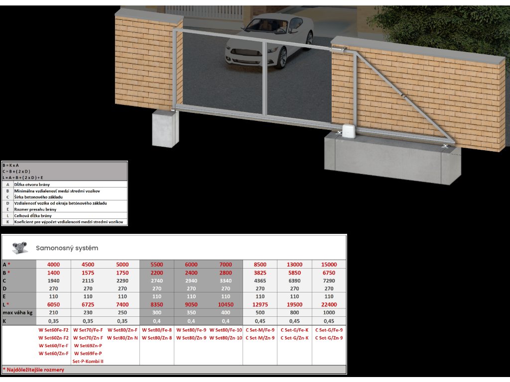 GRANDE-9 samonosný systém 140x140x6 mm pro posuvné brány do 1000 kg / 15 m otvor (C399G/Zn 2x 6 m pozinkovaný profil, C3999G 2ks,C396G 2ks, C397G 2ks), intenzivní provozDoplňkové parametry