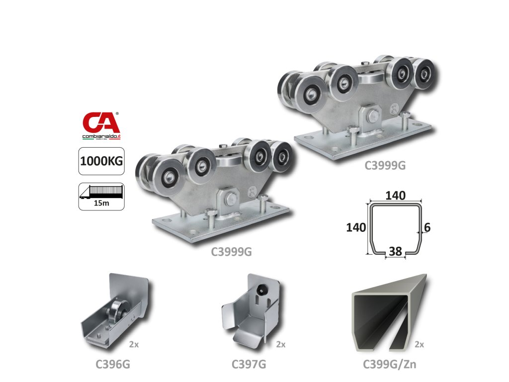 GRANDE-9 samonosný systém 140x140x6 mm pro posuvné brány do 1000 kg / 15 m otvor (C399G/Zn 2x 6 m pozinkovaný profil, C3999G 2ks,C396G 2ks, C397G 2ks), intenzivní provoz