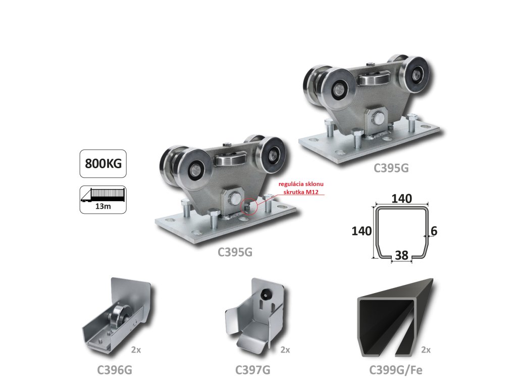 GRANDE-Klasik samonosný systém 140x140x6 mm pro posuvné brány do 800 kg / 13 m otvor (C399G/Fe 2x 6 m černý profil, C395G 2ks, C396G 2ks, C397G 2ks), běžný provoz