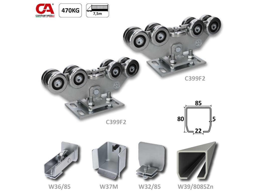 INTERMEDIO samonosný systém 80x85x5mm posuvnej brány do 470kg/7.5m otvor (W39/8085Zn 6m pozinkovaný profil, 2x C399F, 1x W36/85, 1x W37M, 1x W32/85)