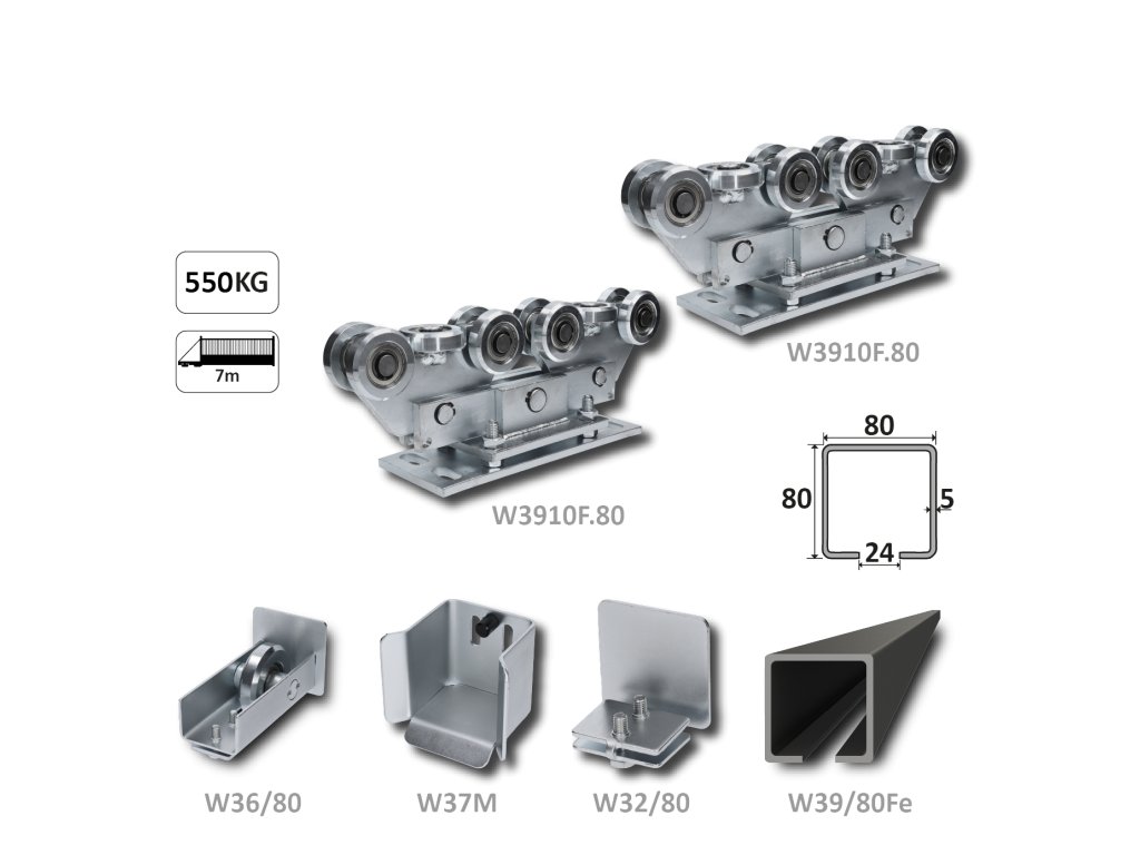 Samonosný systém 80x80x5 mm pro posuvné brány do 400 kg / 7 m otvor (W39/80Fe 6 m černý profil, 2x W3910F.80, 1x W36/80, 1x W37M, 1x W32/80)Doplňkové parametry