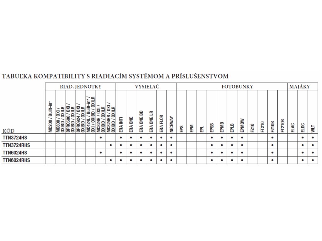 Modely TTN3724HS a TTN6024HS jsou kompatibilní s řídící jednotku Moonclever MC824H, naopak modely TTN3724RHS a TTN6024RHS jsou kompatibilní s řídící jednotkou MC824HR: