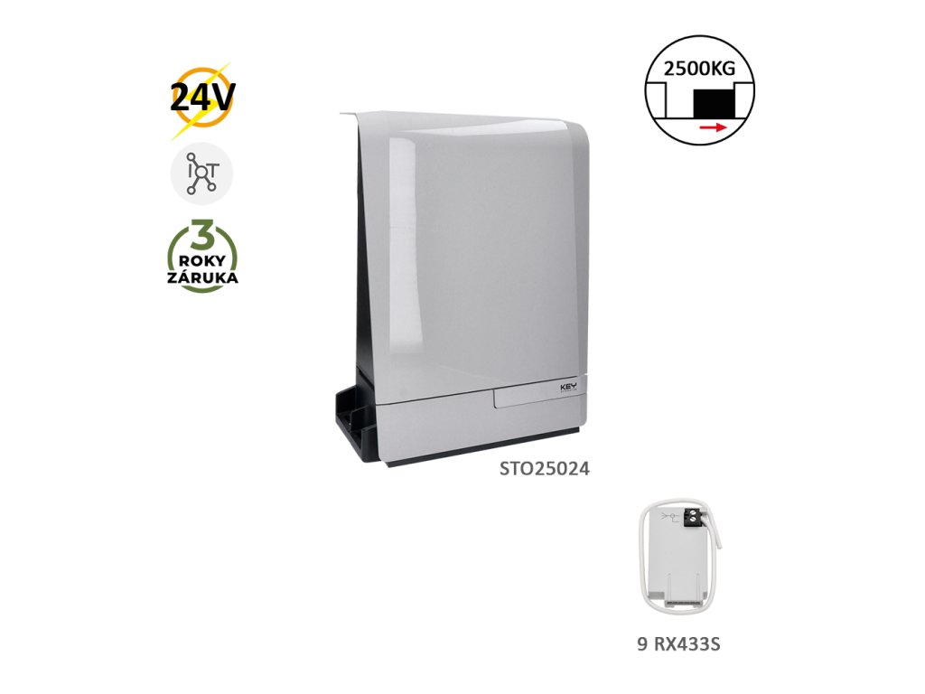 Pohon STO25024 je výkonný elektromechanický pohon určený pro velké a těžké posuvné brány s vysokou hmotností. Je navržen pro náročný každodenní provoz v rodinných domech i v komerčních a průmyslových objektech, kde je kladen důraz na dlouhodobou spolehlivost a stabilní výkon.Pohon pracuje na 24 V stejnosměrné napětí, které zajišťuje tichý a plynulý chod, nižší mechanické zatížení komponentů a vyšší bezpečnost při provozu. Umožňuje jednoduché připojení bezpečnostních prvků, jako jsou fotobuňky, bezpečnostní hrany, ovládací tlačítka nebo dálkové ovládání, a je kompatibilní s běžnými automatizačními systémy.