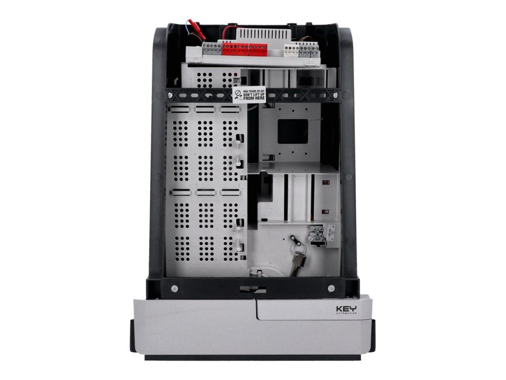 Výkon motoru je přenášen přes masivní kovovou převodovku s ozubenými koly, která zajišťuje dostatečnou sílu pro pohyb velmi těžkých bran a zároveň dlouhou životnost mechanických částí. Integrovaná řídicí elektronika řídí chod motoru, zpracovává signály z bezpečnostních vstupů a ovládacích prvků a upravuje směr a rychlost pohybu brány.