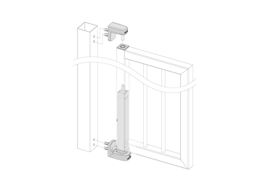 Důležité upozornění: pro zamezení poškození zavírače nebo vyvrácení křídla vrat o hranu sloupku, doporučujeme omezit úhel otevření koncovým dorazem. Koncový doraz není součástí balení.