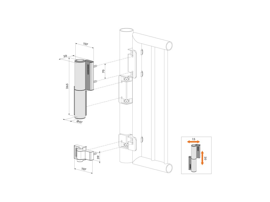 Záves so zabudovaným zatváračom pre brány do 75 kg/1,1 m, RAL9005