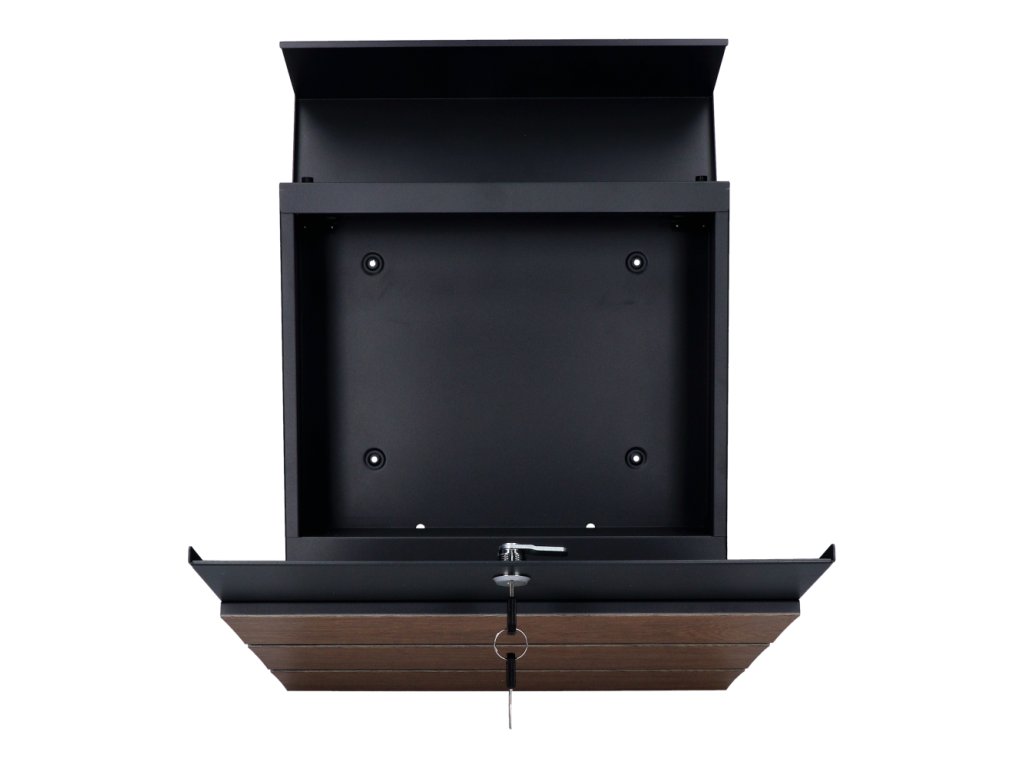 Schránka poštovní se zpomaleným zavíráním (370x410x130mm, tloušťka plechu: 0.8mm), Max. formát listu: A4, Dřevodekor + RAL 7016Doplňkové parametry
