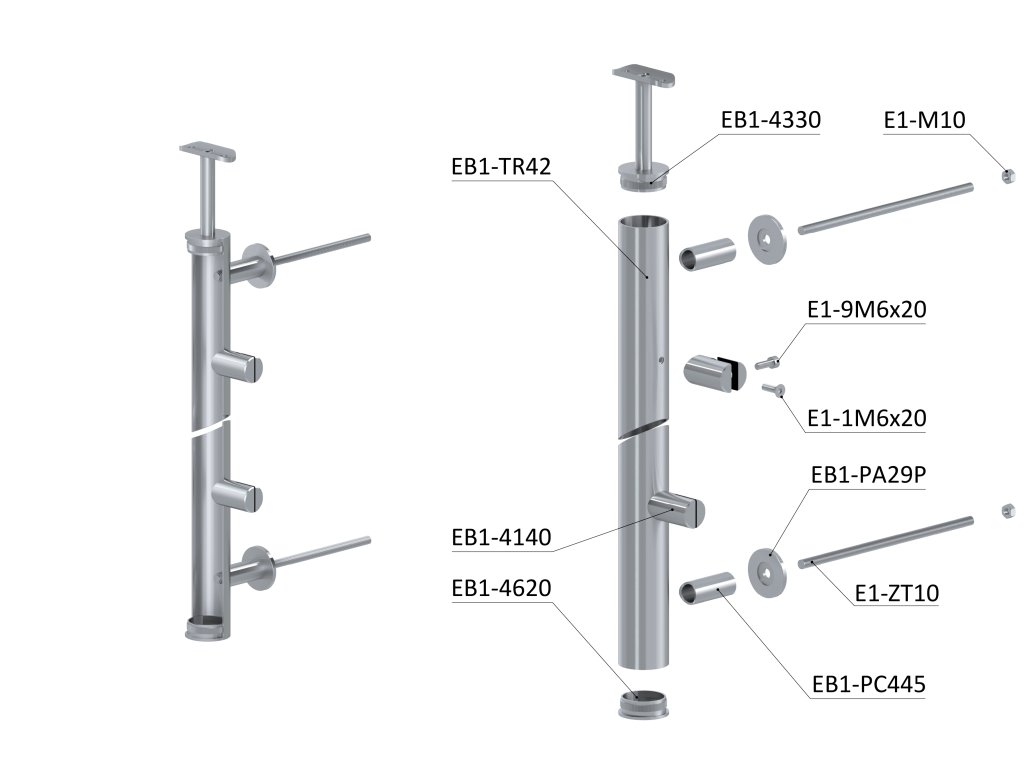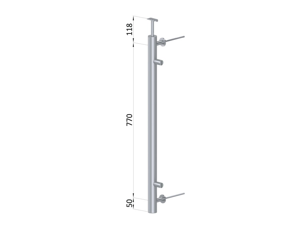 Nerezový sloup, boční kotvení, výplň: plech, pravý, vrch pevný, (ø42.4x2mm), broušená nerez K320 /AISI304Doplňkové parametry
