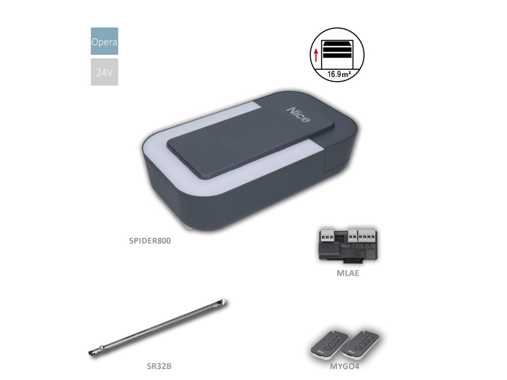 Nice Spider1200W je nejnovějším řešením pro automatizaci garážových vrat, nabízející perfektní symbiózu výkonu, konektivity a designu. Tento motor je ideální pro sekční vrata až do 16,9 m².Klíčové vlastnosti: