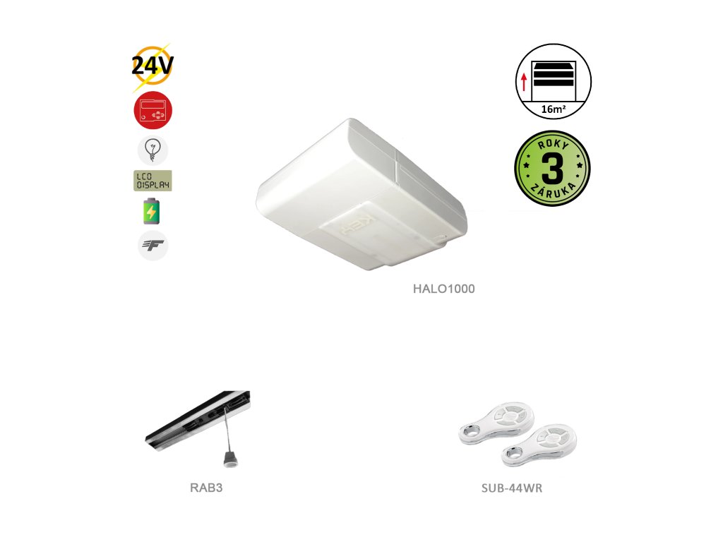 HALO 1000N pohon pro sekční vrata do 16m2 / 130kg s vodicí lištou RAB3