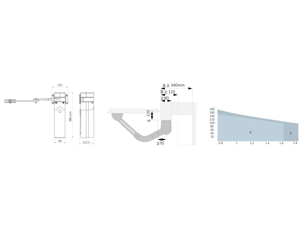 Bezpečný: díky nereverznímu motoru a ramenu proti přicviknutí, se zabudovaným mechanickým dorazem při zavření